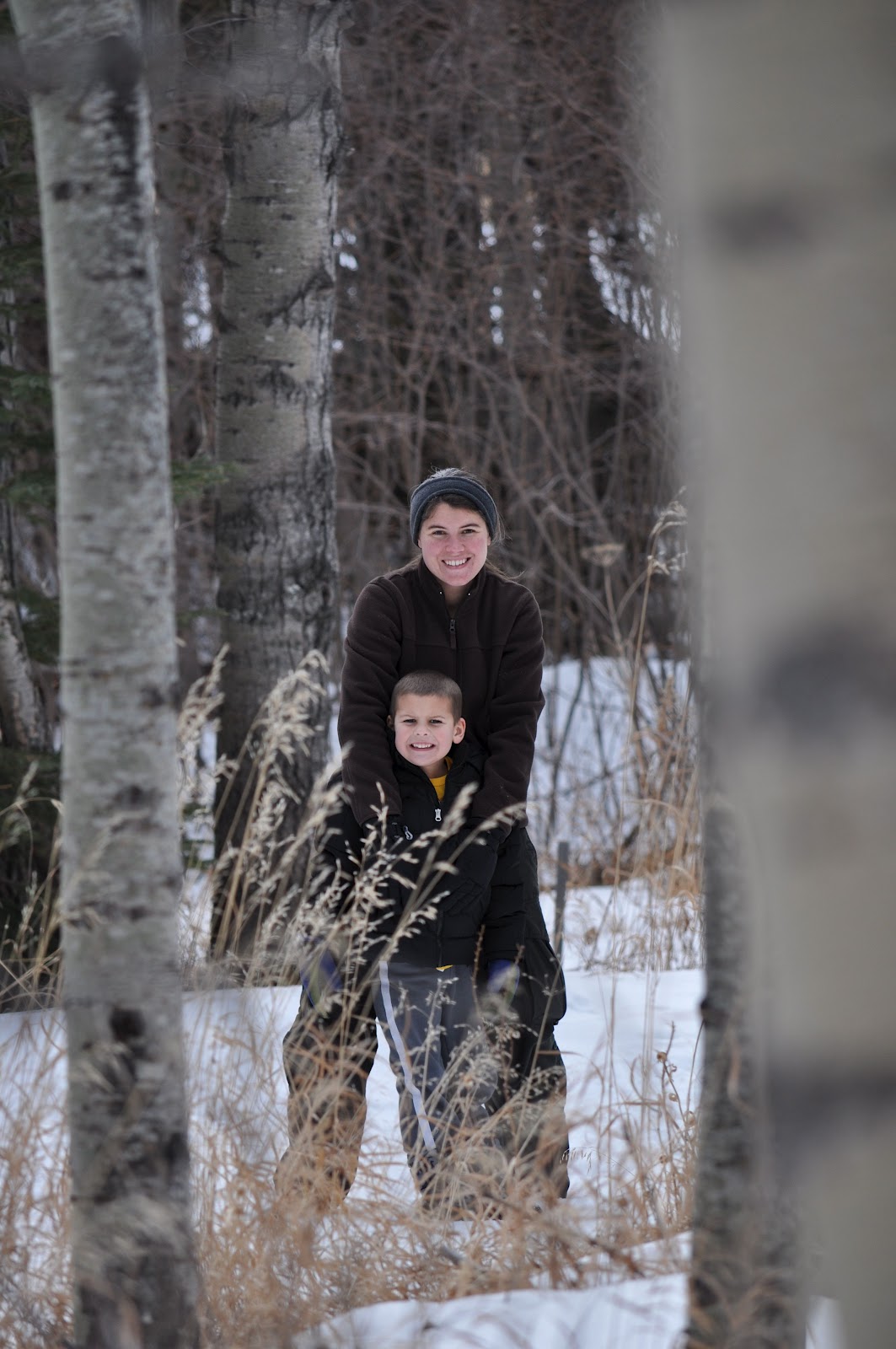Caught these two back in the forest and shortly after, a snowball fight broke out...thankfully my telephoto lens permitted me to capture the action for a distance.